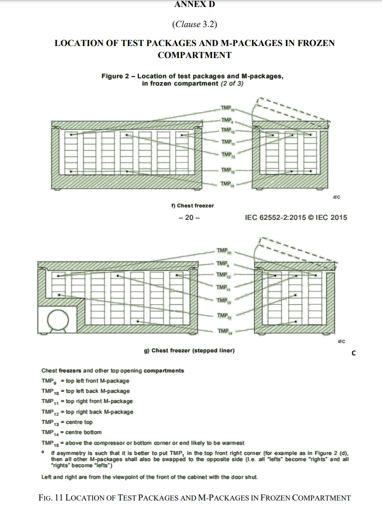 “the locations of test packages and M-packages in frozen compartment for chest fre...